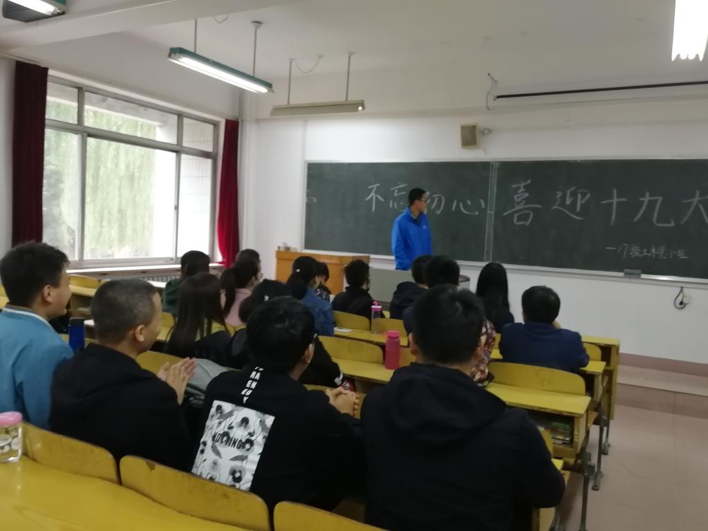 首先,张老师向与会党员及入党积极分子介绍此次会议召开的目的与意义,强调党的十九大的精神,号召党员们跟随习近平总书记的脚步,“不忘初心跟党走”为实现中华民族伟大复兴的中国梦不懈奋斗。会议上同学们自由发言交流了自己关于十九大的感悟与体会,交流了在过去五年内自己身边发生的变化。会议的最后,同学们将自己未来的奋斗目标与对中国发展的祝福写在了会议记录本上,全体党员与党旗合影留念,至此会议正式结束。