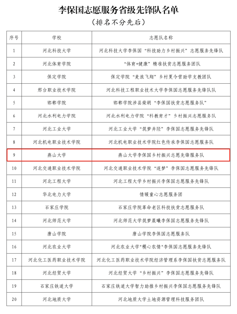 近日,河北省教育厅公布了《李保国志愿服务省级先锋队名单》,由校团委牵头、体育投注平台