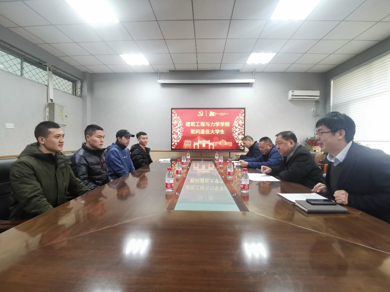 坚持以习近平强军思想为指导,认真落实学校大学生应征入伍工作部署,积极引导青年学生不负韶华、逐梦军营,把大学生应征入伍作为服务国防建设的重要政治任务和促进大学生成长成才的重要举措;扎实做好退伍学生的关怀慰问和帮扶工作,为退伍复学大学生成长成才搭建平台,保驾护航。